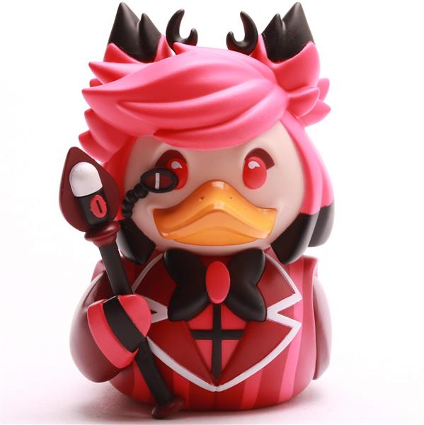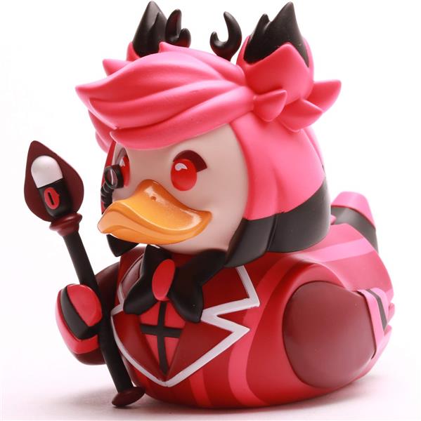 Wenn das Radio knistert und ein dämonisches Lächeln durchs Badezimmer hallt, dann ist Alastor, der Radio-Dämon, nicht weit – zumindest in Form dieser stilvoll durchgeknallten Quietscheente. Mit seinem eleganten roten Anzug, Monokel und Mikrofon in der Hand wirkt er wie der Gastgeber einer Talkshow direkt aus der Hölle – charmant, gefährlich und immer einen sinistren Spruch auf den Lippen. Diese Badeente bringt Oldschool-Flair und dämonische Coolness direkt in deine Wanne.