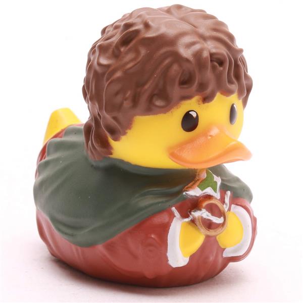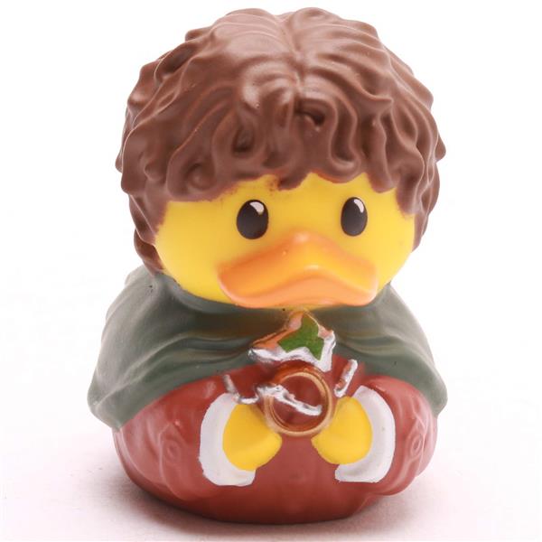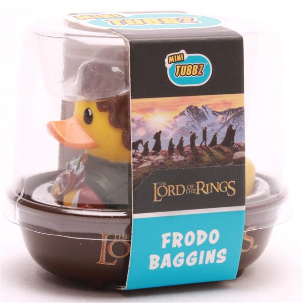 Tauche ein in die Welt von Mittelerde mit der Mini TUBBZ Badeente "Frodo Beutlin". Diese einzigartige Sammleredition verwandelt den mutigen Hobbit in eine charmante Quietscheente, die nicht nur für Fans von "Der Herr der Ringe" ein echtes Highlight ist. Frodo, im klassischen Reiseoutfit mit seinem unverkennbaren grünen Umhang und der rostbraunen Weste, hält mutig das Eine Ring fest. Trotz seiner Miniaturgröße von nur 50% der Standard-TUBBZ macht er eine beeindruckende Figur.