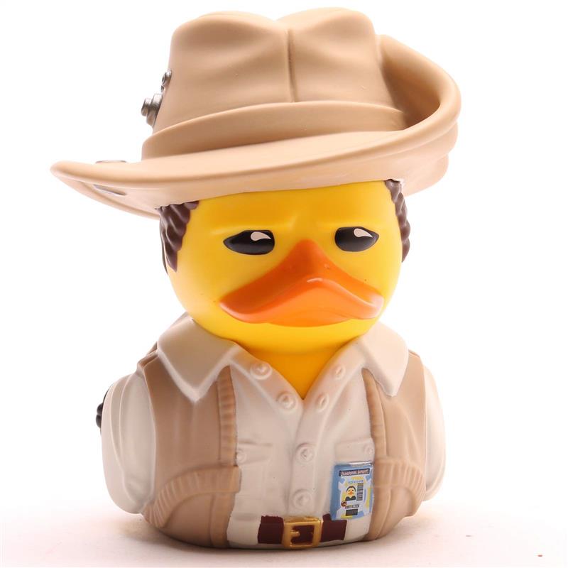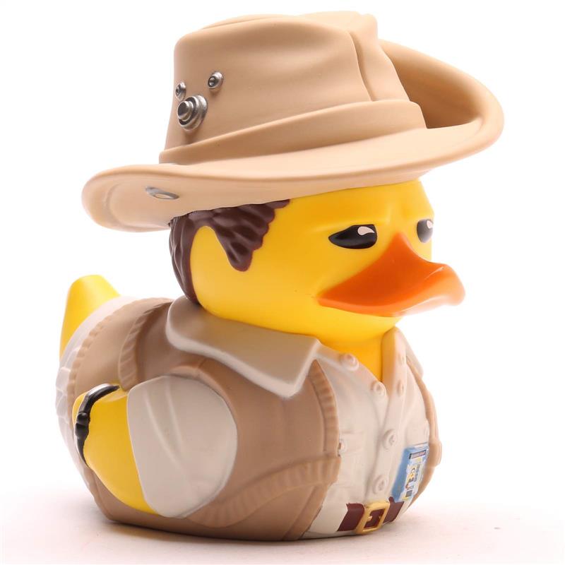 - Eine TUBBZ-Erstausgabe". In einer Sammler-Badewanne mit Jurassic Park-Logo, "First Edition"-Aufdruck auf dem Boden der Ente und Aufkleber auf der Verpackung
