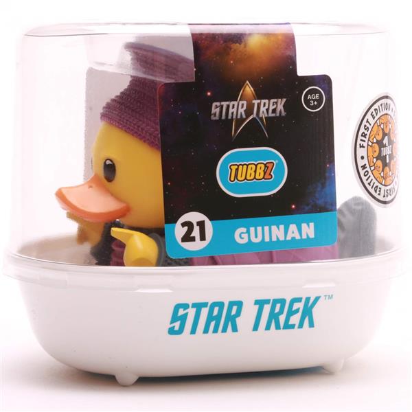 Sie trägt lila, sie hört zu – und jetzt schwimmt sie auch! Die offizielle Star Trek Badeente „Guinan“ ist da und bringt intergalaktische Weisheit direkt in deine Badewanne. Dieses Quietscheentchen in Form der legendären Barkeeperin aus Ten Forward kommt mit ikonischem Turban, ruhiger Ausstrahlung und einer gehörigen Portion galaktischer Gelassenheit. Ob du gerade den Lauf der Zeit retten musst oder einfach nur ein entspannendes Schaumbad nimmst – Guinan ist die perfekte Begleiterin.