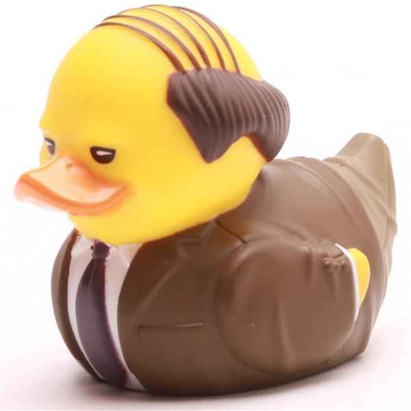 Diese Badeente bringt nicht nur Zahlen ins Rollen, sondern auch Herzen zum Schmelzen: Die Mini Quietscheente „Kevin Malone“ aus der The Office-Serie ist der perfekte Mix aus liebenswert, leicht verplant und herrlich snackverliebt. Im schicken Anzug und mit dem typischen trägen Blick schaut dieses Quietscheentchen genau so drein, als hätte es gerade Chili gekocht – aber diesmal ohne Zwischenfall.