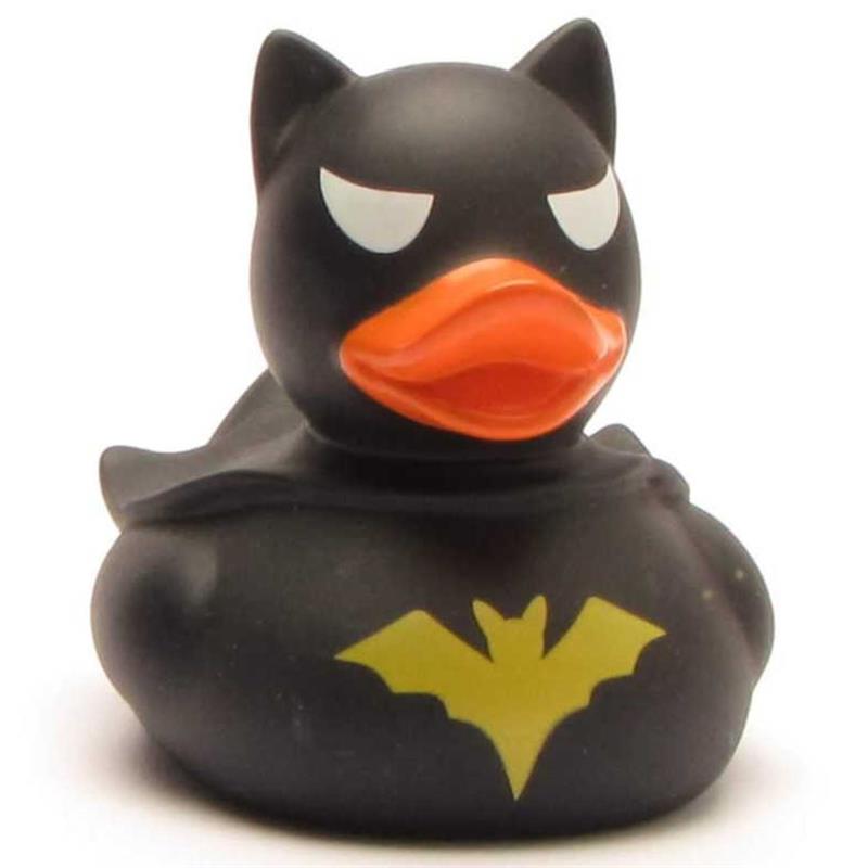 Diese Badeente ist der dunkle Rächer deiner Badewanne – geheimnisvoll, cool und immer einsatzbereit. In tiefem Schwarz, mit gelbem Symbol auf der Brust und markantem Cape ausgestattet, wacht sie über dein Badezimmer und sorgt dafür, dass kein Schaumberg ungeschützt bleibt. Ihr entschlossener Blick verrät: Diese Quietscheente nimmt ihre Mission ernst – Spaß und Action ins Bad zu bringen!