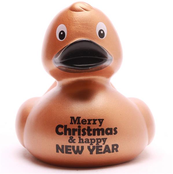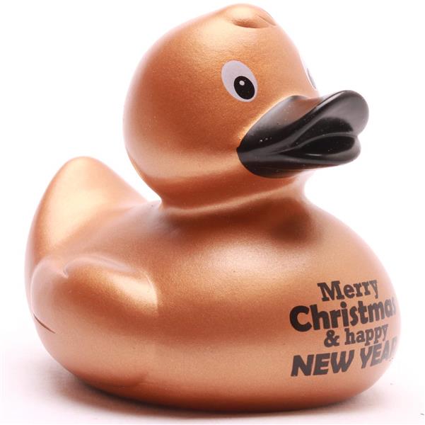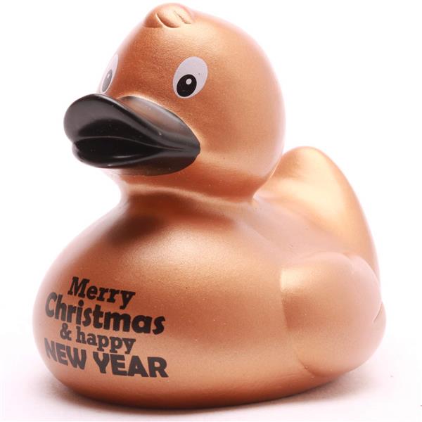 Diese goldglänzende Badeente ist der perfekte Weihnachtsgruß mit Stil! Mit ihrem festlichen Glanz und der charmanten Botschaft "Merry Christmas & Happy New Year" sorgt sie nicht nur für feierliche Stimmung, sondern auch für ein Lächeln bei allen, die sie zu Gesicht bekommen. Ob du sie als kleines Geschenk für Freunde und Familie verwendest oder einfach als witzige Deko in deinem Bad platzierst – diese Ente ist der ultimative Weihnachtsbegleiter.