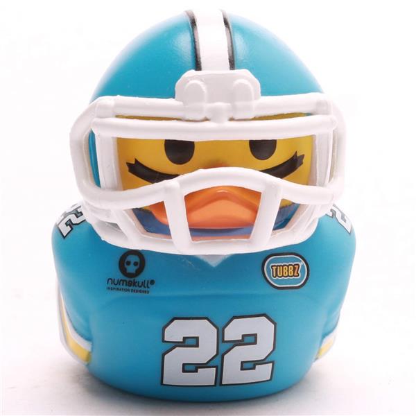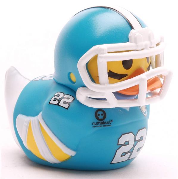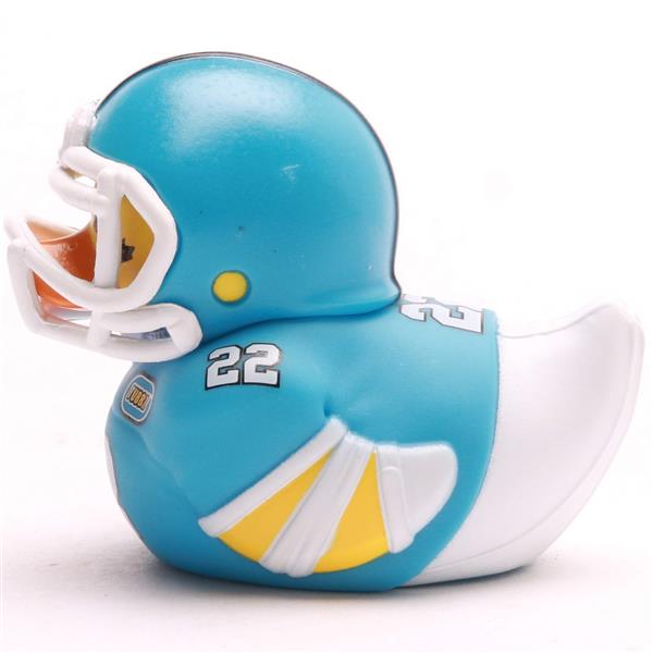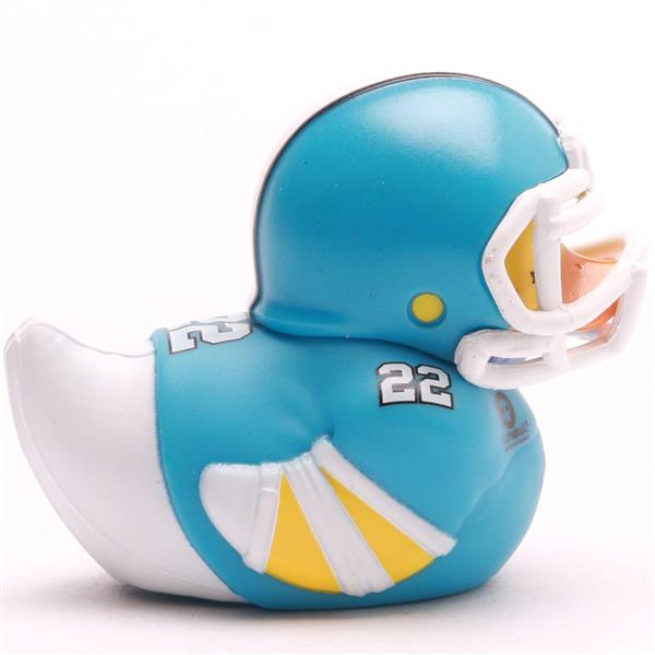 Diese Badeente ist bereit für den großen Touchdown! Die Mini-Badeente im American Football Look bringt ordentlich Power ins Spiel – und das nicht nur in der Badewanne. Mit ihrem himmelblauen Trikot, der Nummer 22 auf der Brust und dem stylischen Helm sieht dieses Quietscheentchen aus, als würde es gleich durch die Line of Scrimmage stürmen. Doch keine Sorge: Bei allem sportlichen Ehrgeiz bleibt sie natürlich ein echtes Badeenten-Unikat mit Sammelpotenzial.