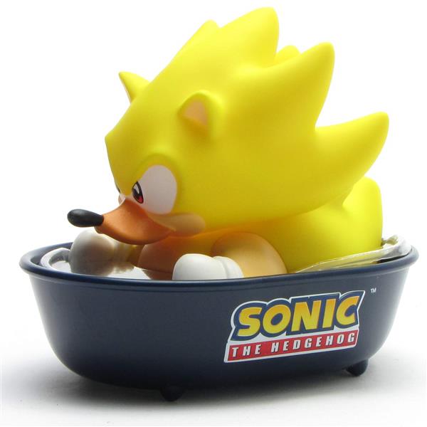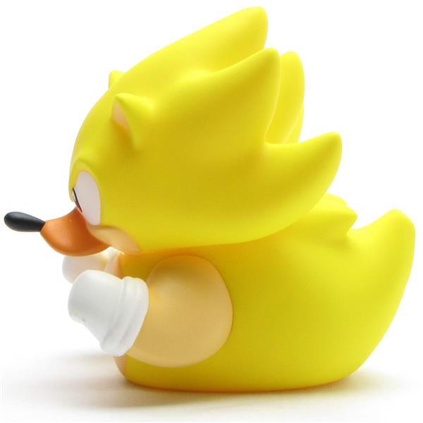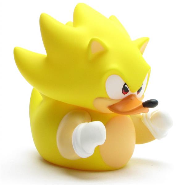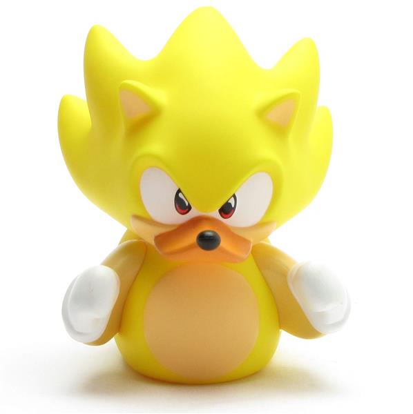Hochwertig, detailreich, und ein Hauch von Videospielgeschichte – genau das ist unsere Super Sonic Ente. Schnapp Dir diese unverwechselbare Quietscheente und bring ein bisschen Geschwindigkeit in Dein Bad!