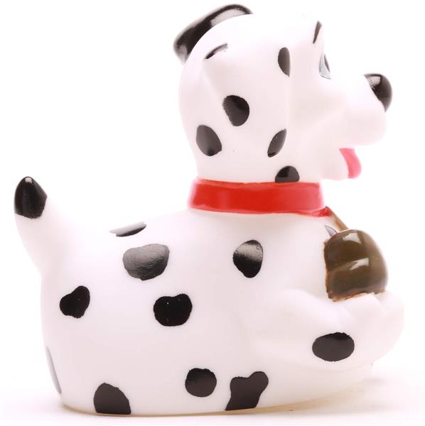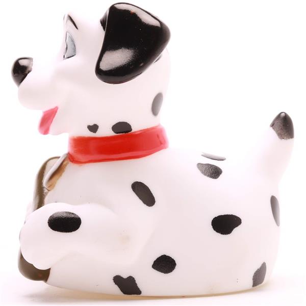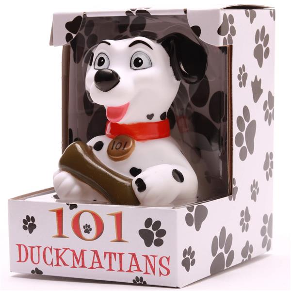 Erlebe ein tierisch nasses Abenteuer mit der Dalmatiner-Badeente „101 Duckmatians“! Diese quietschende Charme-Offensive kommt mit schwarzen Punkten, einem roten Halsband und einem knuffigen Knochen daher. Perfekt, um deinen Badespaß in eine witzige Hommage an den berühmten Film „101 Dalmatiner“ zu verwandeln – nur eben im Badeenten-Style!