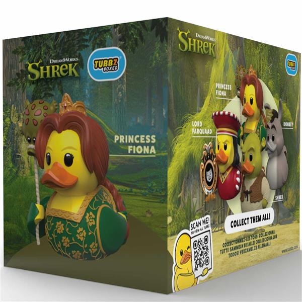 Die Princess Fiona Quietscheente wird in einer dekorativen Box geliefert, perfekt zum Sammeln, Verschenken oder einfach zum Freuen. Zusammen mit Shrek und den anderen Charakteren aus der Reihe bildet sie das perfekte märchenhafte Enten-Team.