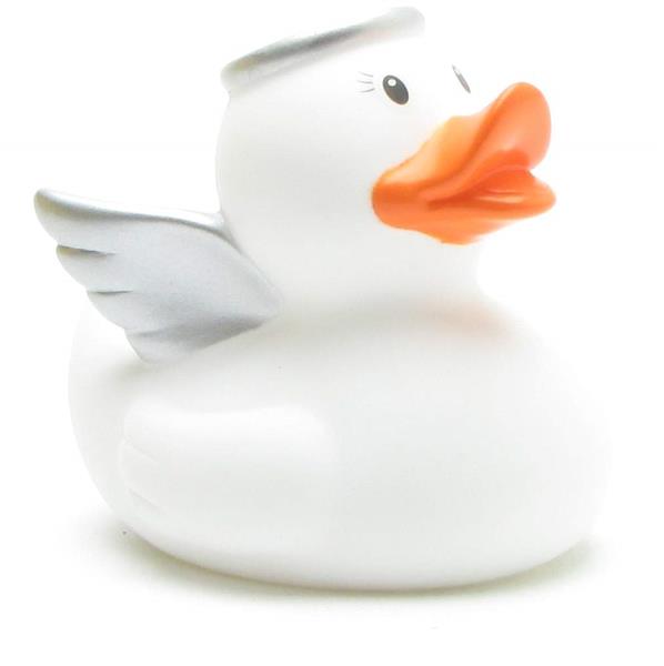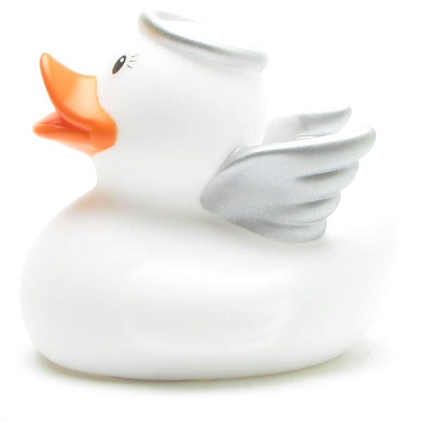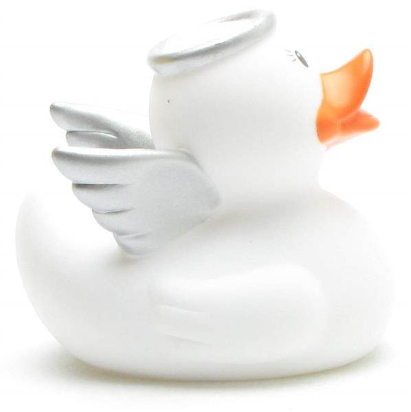Unsere Gummiente sticht sofort ins Auge und zieht alle Blicke auf sich. Ganz in Weiß, mit schimmernden silbernen Engelsflügeln und einem Heiligenschein, der so glänzt, dass man fast glaubt, es sei echt. Es ist, als wäre sie direkt vom Himmel in deine Badewanne geflogen. Aber lass dich nicht täuschen, sie ist nicht nur zum Anschauen da - sie ist ein wahres Quietschvergnügen!