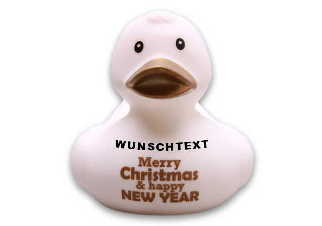 Badeente Merry Christmas & Happy New Year - weiss - Personalisiert