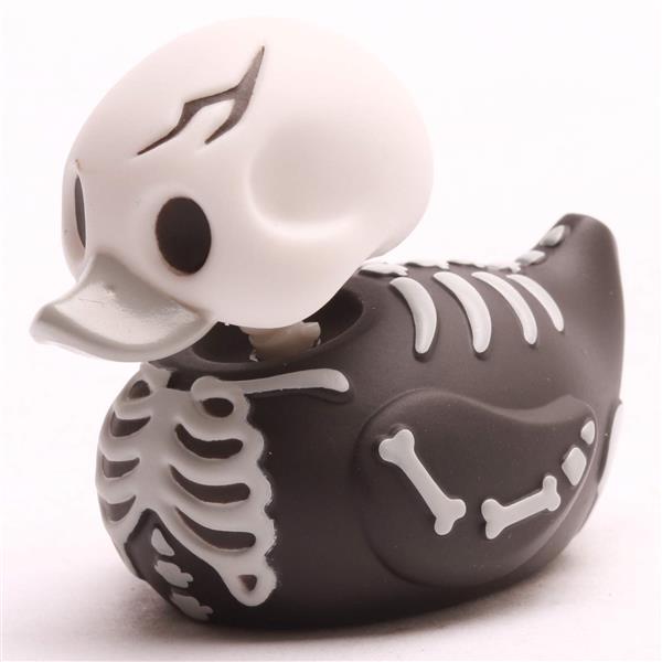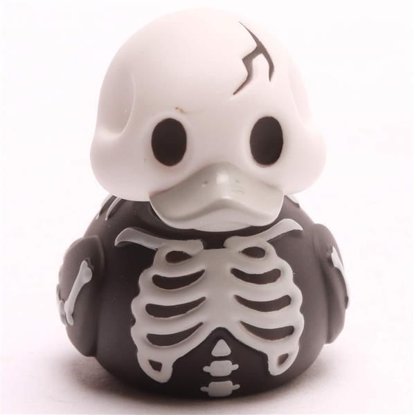 Klein, gruselig und einfach knochenstark: Die Mini Badeente Halloween – Skeleton bringt schaurigen Sammelspaß ins Haus. Mit ihrem schwarzen Körper, aufgemalten Knochen und dem markanten Totenkopf-Look ist dieses Quietscheentchen perfekt für alle, die ein Faible für das Unheimliche haben. Trotz ihrer handlichen Größe steckt in ihr jede Menge Grusel-Charme, der jede Badeenten-Sammlung zum Schaudern – und Schmunzeln – bringt.