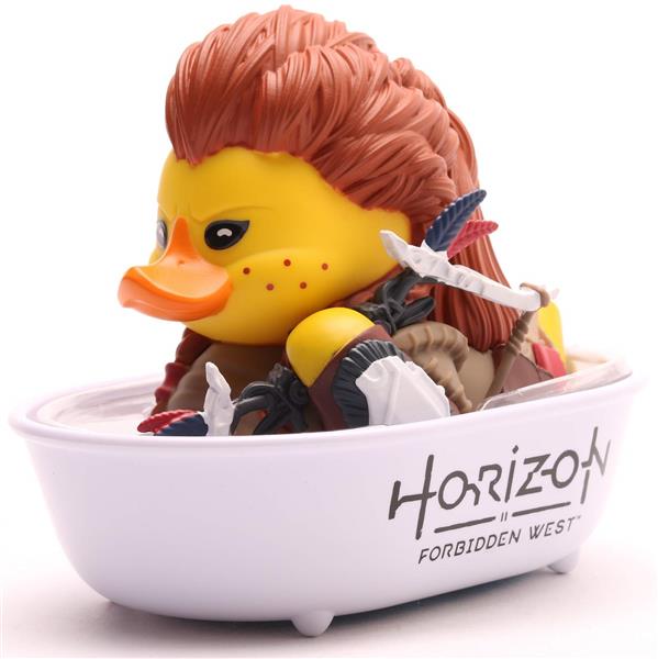 - Eine 'First Edition' TUBBZ. Wird in einer Sammlerwanne geliefert, mit Horizon Forbidden West-Logo, 'First Edition'-Aufdruck auf dem Boden der Ente und Sticker auf der Verpackung.