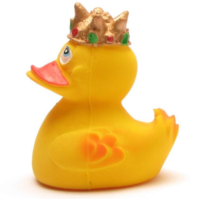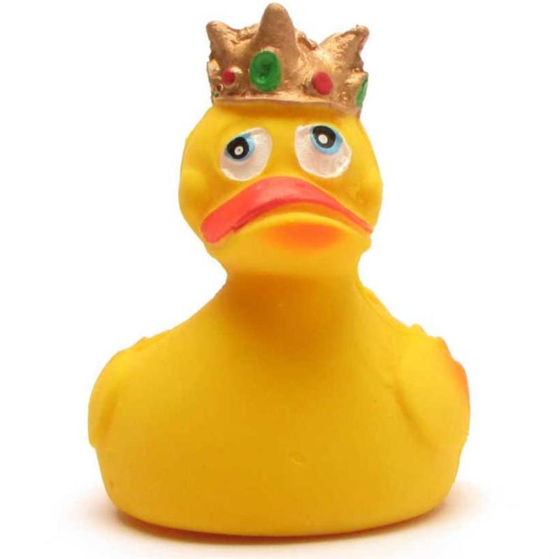 Aufgepasst, hier kommt der König des Badespaßes: Unsere Badeente King Duck! Gekrönt mit einer goldenen Krone, besetzt mit bunten Steinen, wird dieses Gummiente garantiert zum Highlight in deiner Badewanne. Aber keine Sorge, trotz des royalen Aussehens bleibt King Duck bodenständig und quietscht vergnügt wie jedes andere Quietscheentchen auch.