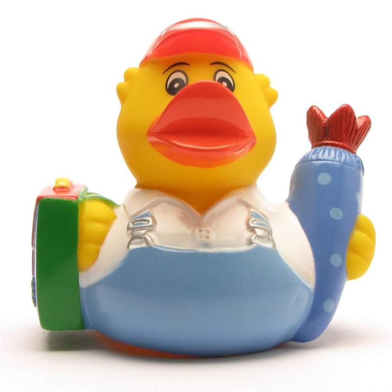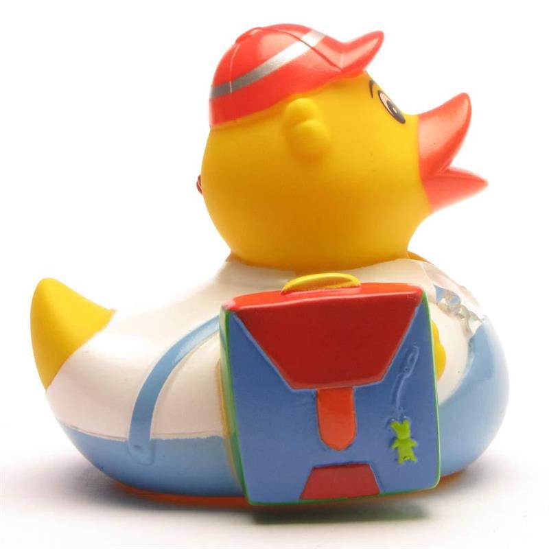 Hergestellt aus hochwertigem Vinyl, kleidet sich unser Quietscheentchen in einer niedlichen blauen Latzhose, kombiniert mit einer farblich passenden Kappe. Aber was wäre ein Schulanfänger ohne seine Schultüte und seinen Tournister? Richtig, nur halb so süß! Unsere Gummiente hat alles dabei und ist bereit für den großen Sprung ins Wasser.