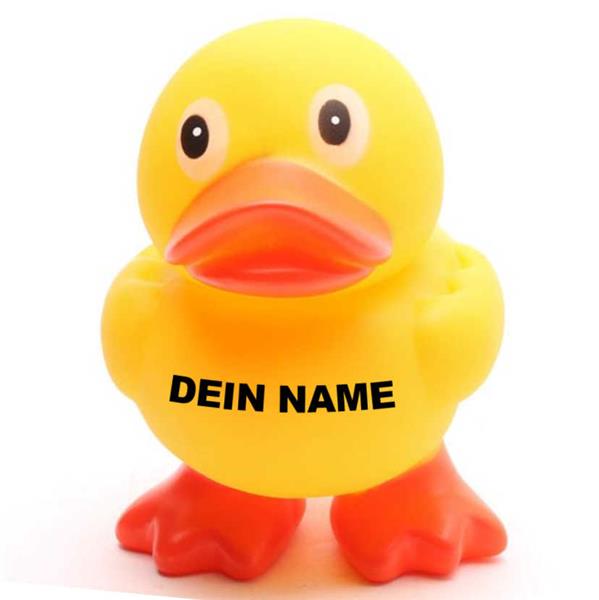 Du möchtest eine personalisierte Ente? Wir drucken auf der Ente den Namen, den Du wünscht.