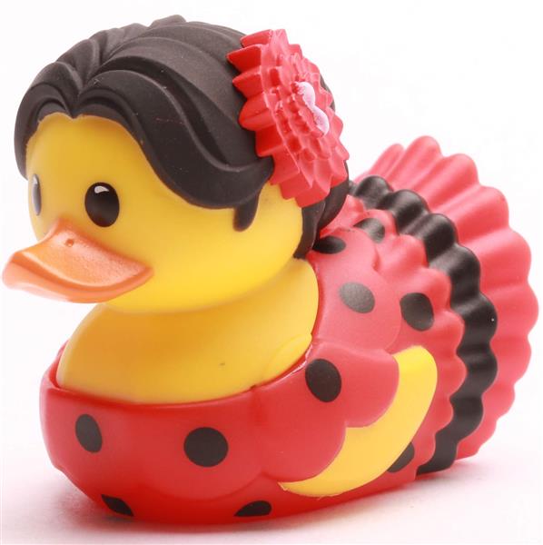 Diese Mini-Badeente bringt pure spanische Leidenschaft in deine Sammlung. Die Quietscheente Spain trägt ein leuchtend rotes Kleid mit schwarzen Punkten, das sofort an den traditionellen Flamenco erinnert. Abgerundet wird das Outfit durch eine rote Blume im Haar, die dieser kleinen Tänzerin einen Hauch von Eleganz und Feuer verleiht. So fängt sie den temperamentvollen Geist Spaniens perfekt ein und versprüht mediterrane Lebensfreude – egal ob im Badezimmer oder im Sammlerregal.