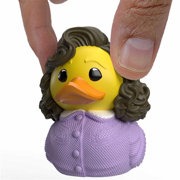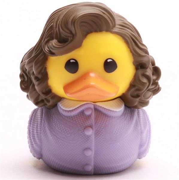 Charmant, stilvoll und voller Retro-Flair – die Mini Badeente Lorraine Baines McFly bringt den Zauber der 50er-Jahre direkt ins Badezimmer! Mit ihrem lilafarbenen Cardigan, der eleganten Frisur und einem Hauch Nostalgie erinnert sie an die Zeiten von Petticoats, Milchshakes und ersten Dates beim Schulball.